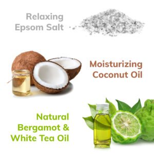 All-Natural Ingredients: Baking Soda, Citric Acid, Essential Bergamot White Tea Oil, Epsom Salt, Dead Sea Salt, Himalayan Salt, Kaolin Clay, Coconut Oil and Olive Oil.